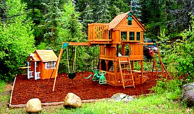 Children love playing on the playground located down by the river.